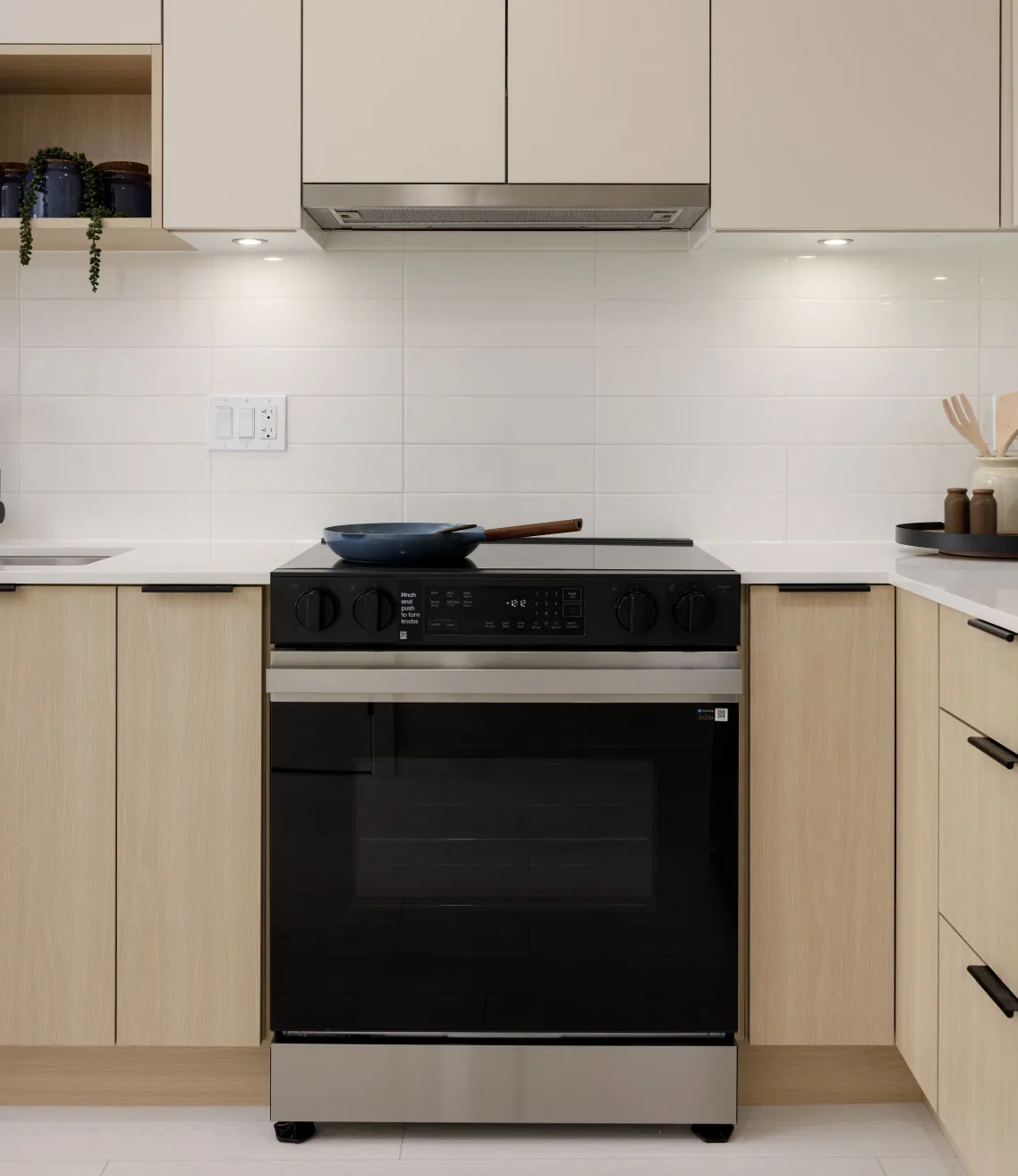 Full-size stainless steel appliances by Samsung will bring heat with a side of efficiency to your kitchen.